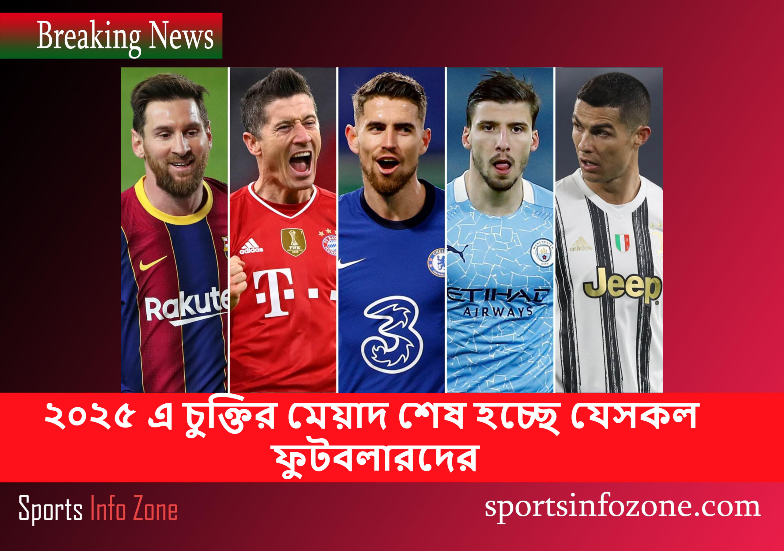 ২০২৫ সালটি অনেক শীর্ষস্থানীয় খেলোয়াড়ের জন্য একটি গুরুত্বপূর্ণ বছর হতে চলেছে। কারন, ক্লাব জুড়ে চুক্তির মেয়াদ শেষ হতে চলেছে এবং পুনর্নবীকরণ না করা হলে এই তারকারা বিনামূল্যে এজেন্ট হয়ে যাবে। এর মানে হল যে দলগুলি তাদের স্বাক্ষর করবে তারা ট্রান্সফার ফি দেবে না, যদিও সাইনিং বোনাস সম্ভবত তাৎপর্যপূর্ণ হবে। ২০২৫-এ চুক্তির মেয়াদ শেষ হওয়ার সাথে সাথে কিছু মূল্যবান খেলোয়াড়কে এখানে দেখুন।