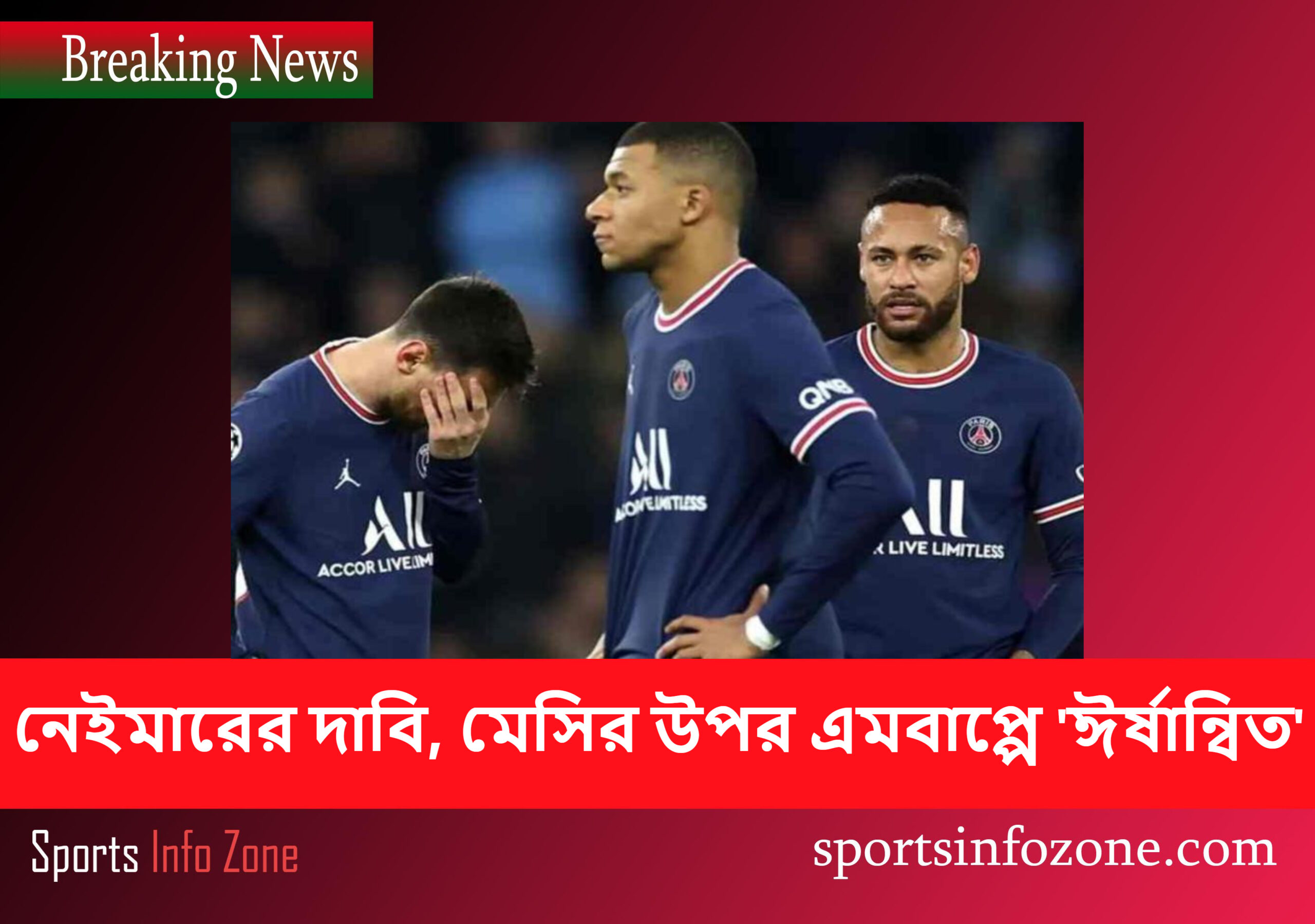 ব্রাজিলিয়ান স্ট্রাইকার নেইমার বৃহস্পতিবার বলেছেন যে, প্যারিস সেন্ট-জার্মেইর প্রাক্তন সতীর্থ কিলিয়ান এমবাপ্পে ২০২১ সালে আর্জেন্টাইন সুপারস্টার লিওনেল মেসির যোগদানের পর লিওনেল মেসির সাথে তার সম্পর্কের জন্য “ঈর্ষান্বিত” হয়ে পড়েছিলেন।